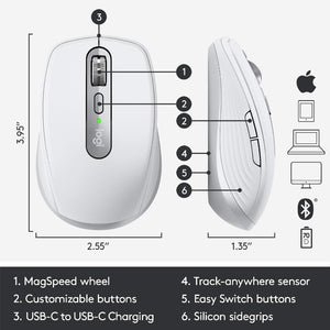 The Logitech MX Anywhere 3 Compact Performance Mouse for Mac is designed for those who demand power, precision, and portability. Engineered specifically for macOS and iPadOS, this wireless mouse offers seamless connectivity and smooth performance, making it ideal for professionals, creatives, and on-the-go users. With its compact design, ultra-fast MagSpeed™ scrolling, and long-lasting battery life, the MX Anywhere 3 ensures you stay productive wherever you work.