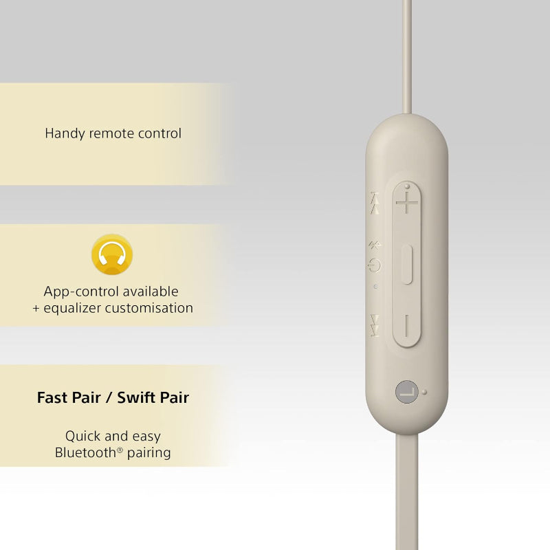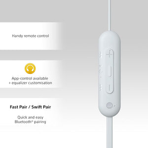 The Sony WI-C100 Bluetooth Wireless In-Ear Earphones offer a seamless combination of high-quality audio, convenience, and comfort. Designed for music lovers and active users, these earphones deliver clear, rich sound with powerful bass while keeping you connected hands-free. The lightweight and ergonomic design ensures a comfortable fit for extended wear, while the long-lasting battery provides hours of uninterrupted listening. Sweat-resistant construction makes them ideal for workouts or daily commutes. With easy Bluetooth connectivity, these earphones are perfect for streaming music, taking calls, and enjoying on-the-go audio without any hassle. Elevate your listening experience with Sony WI-C100 – the ultimate in convenience, performance, and style.