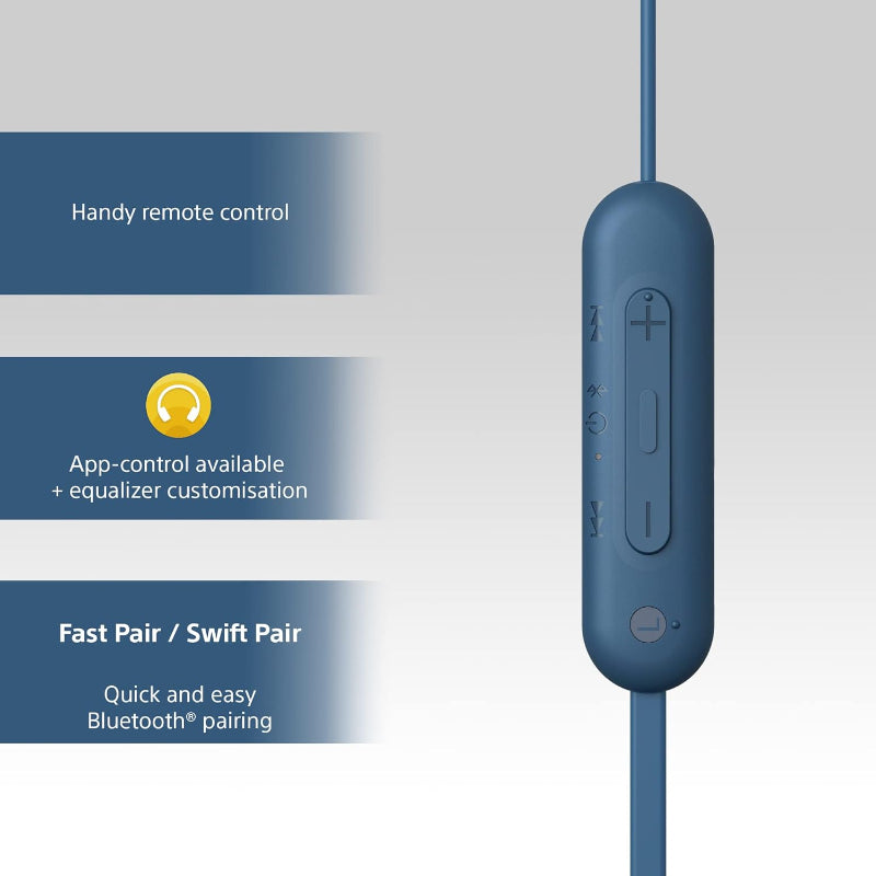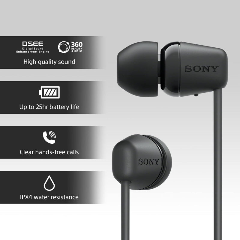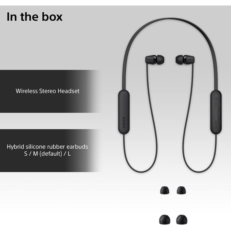 Sony WI-C100 Bluetooth Wireless In-Ear Earphones – Lightweight, Long Battery Life, Clear Sound, Hands-Free Calls, Sweat-Resistant, Comfortable Fit
