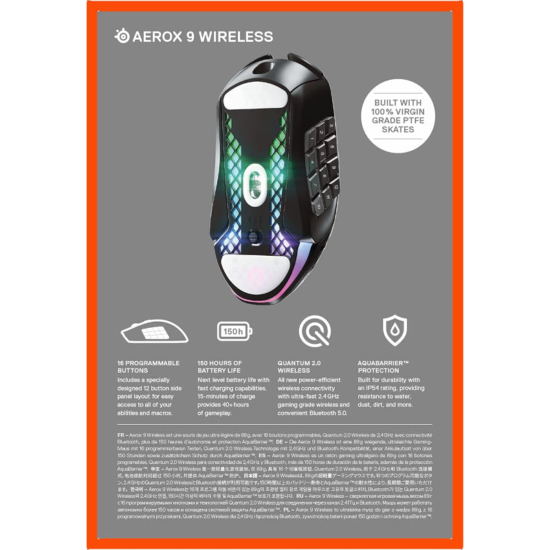 SteelSeries Aerox 9 Wireless Gaming Mouse – Ultra-Lightweight, MOBA & MMO Optimised, High-Performance, Long Battery Life, Customisable Buttons