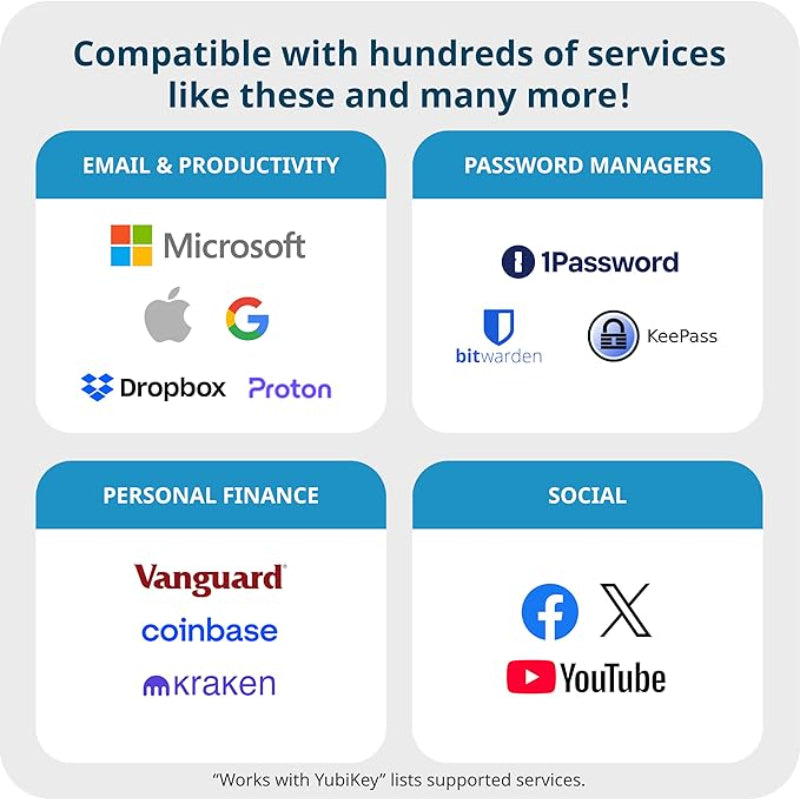 - Multi-Protocol Support – Supports FIDO2, U2F, OTP, Smart Card (PIV), and OpenPGP.